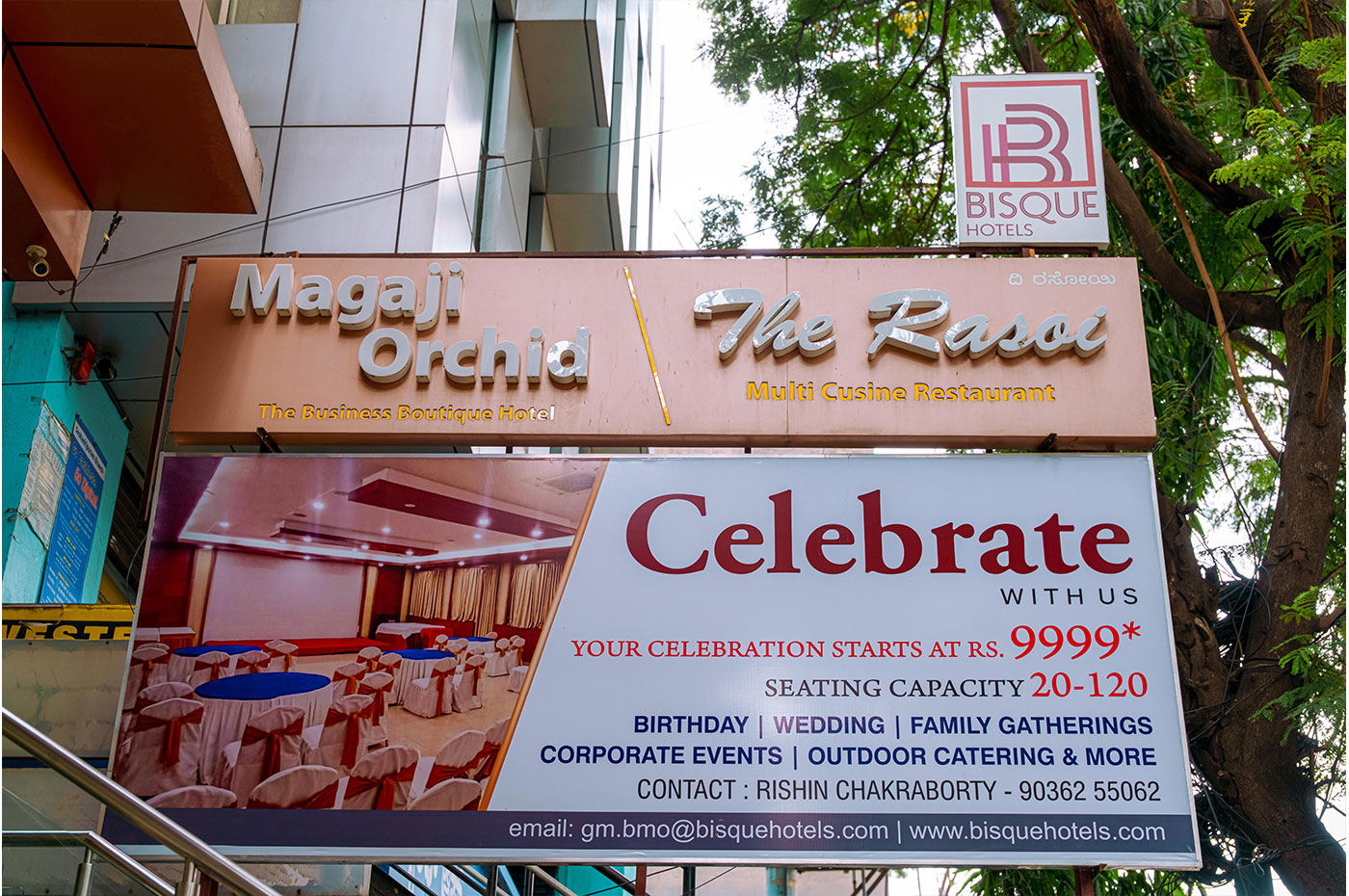 Located in the bustling Bengaluru City Centre, Bisque Magaji Orchid offers an ideal hotel for both business travellers and leisure seekers. Conveniently situated just 2 kms from Majestic Bus Stand and KSR Railway Station, 32 km from Kempegowda International Airport, and a mere 1 km from the iconic Malleswaram Shopping Hub, this 3-star hotel is perfectly positioned to provide access to Bengaluru’s major attraction.
